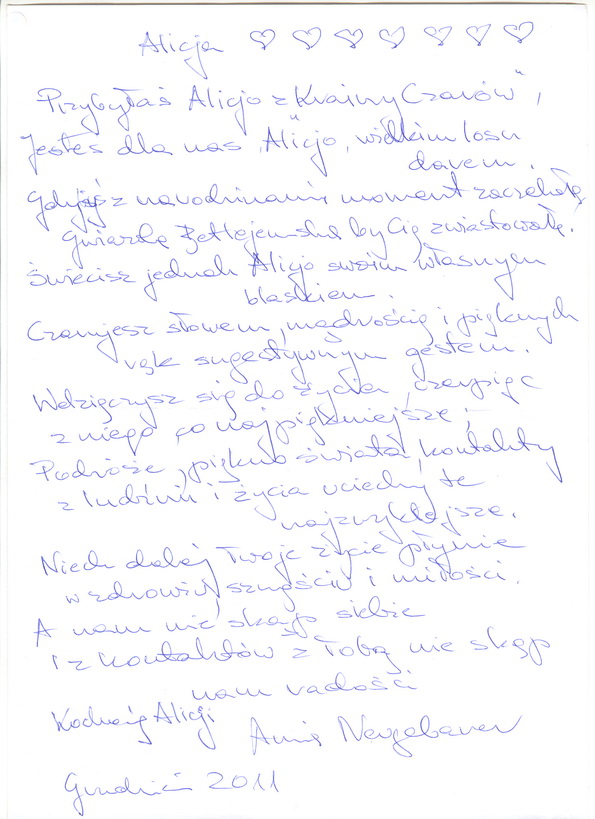 Pani Alicja poprowadziła mnie nową drogą i dziś jestem bliżej szczęścia za co bardzo jej dziękuję.